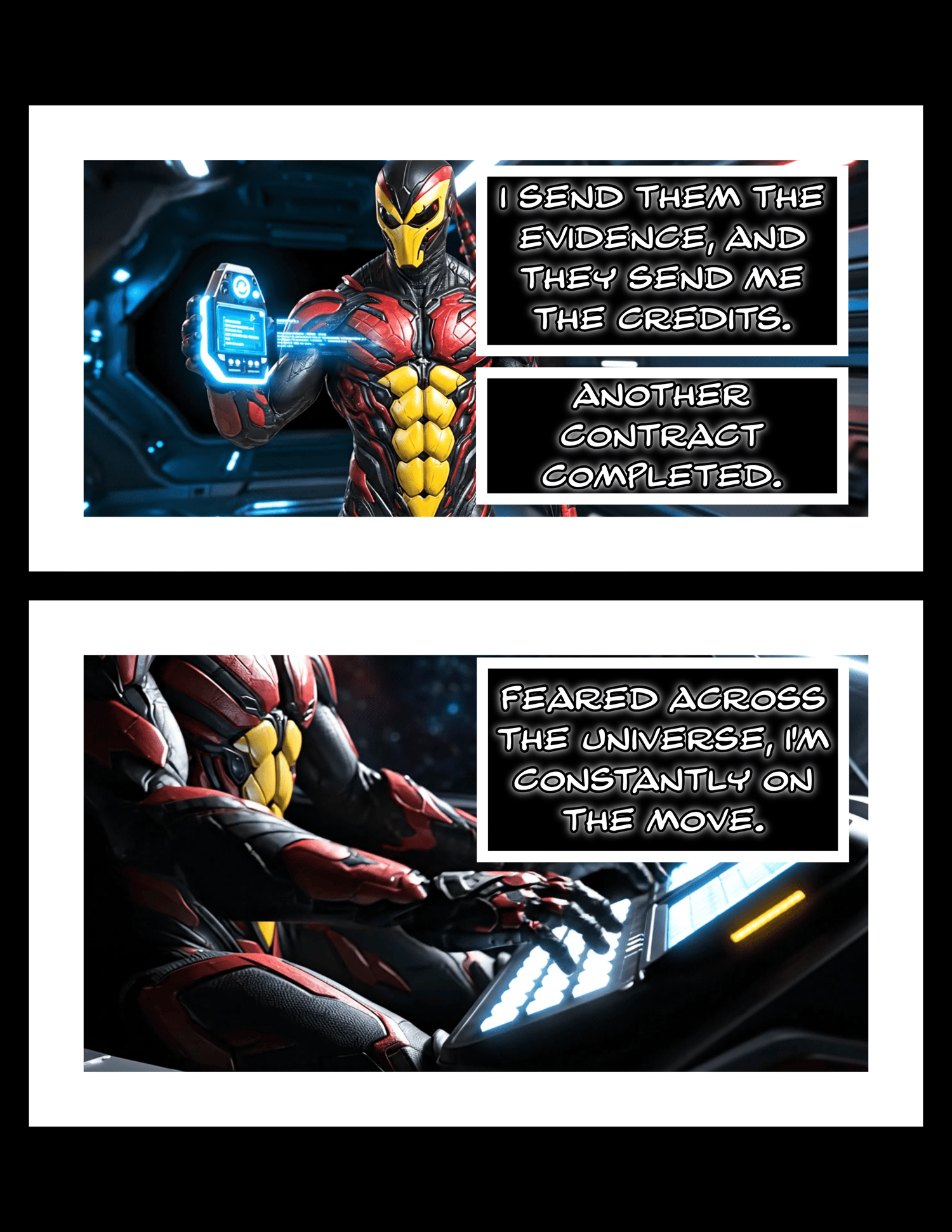 In a universe where heroes fall and villains rise, one law stands supreme: survival. Meet Kruel, an assassin-for-hire whose only allegiance is to the highest bidder. Forged in the constant wars of his homeworld , he was honed into a living weapon feared across the galaxies. With lethal strength, regenerative abilities, and a tail that can slice through steel , he hunts everyone from the vilest villains to the mightiest heroes. He doesn't pick sides —he just completes the contract. Dive into the shadows and discover the origin of the cosmos's deadliest mercenary.