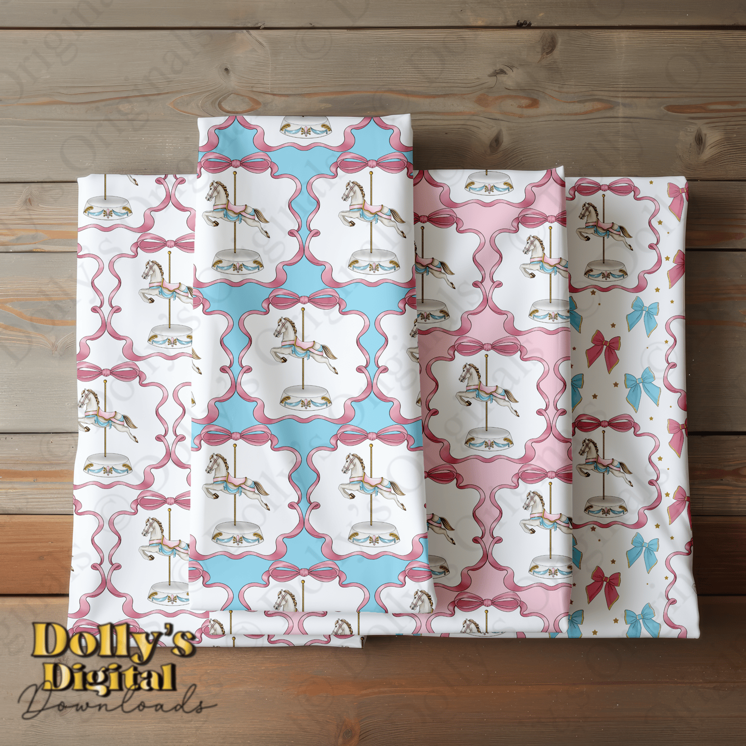Includes the Carousel Horse Seamless Patterns PNG tiles (4 PNG’s)