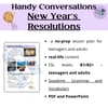 This lesson plan combines English Language Arts, ESL, ELL, New Year's Resolutions, idioms, Role-Plays, Functional Langauge for suggestions, Grammar (wish/if only/will/be going to/would like to), Tips, vocabulary, conversations, speaking, projects, and research in one lesson.