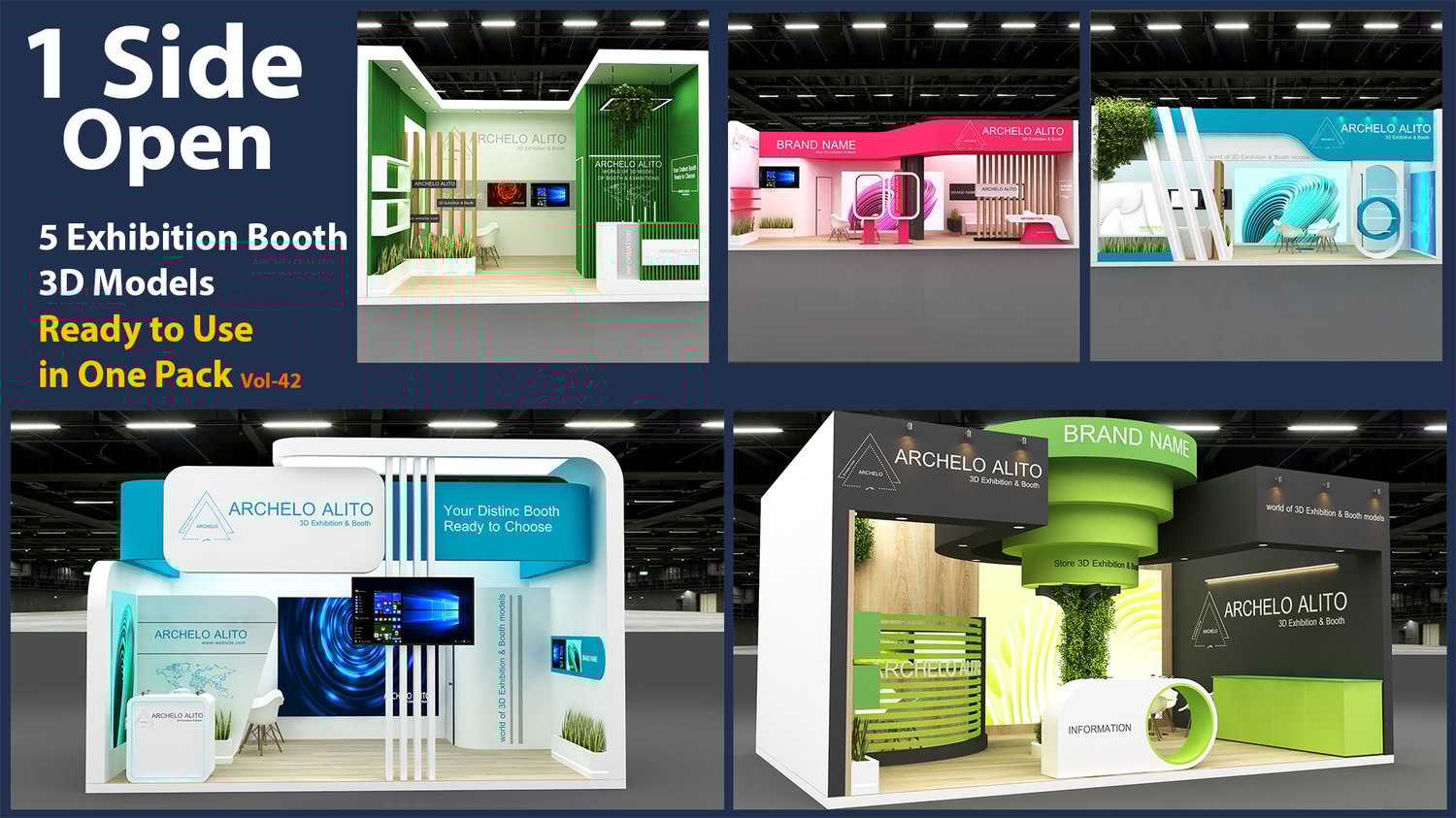 5 Exhibition 3D Model in One Pack (( 1 Side Open Exhibitions))