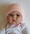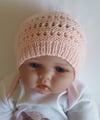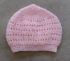 Baby’s 4ply eyelet and purl st Beanie with rib brim - Abby