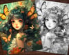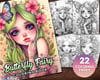 22 Butterfly Fairy Girls Coloring Book, Adults + kids- Download - Grayscale Coloring Page - Gift, Printable PDF, Fairy girls, Butterflies