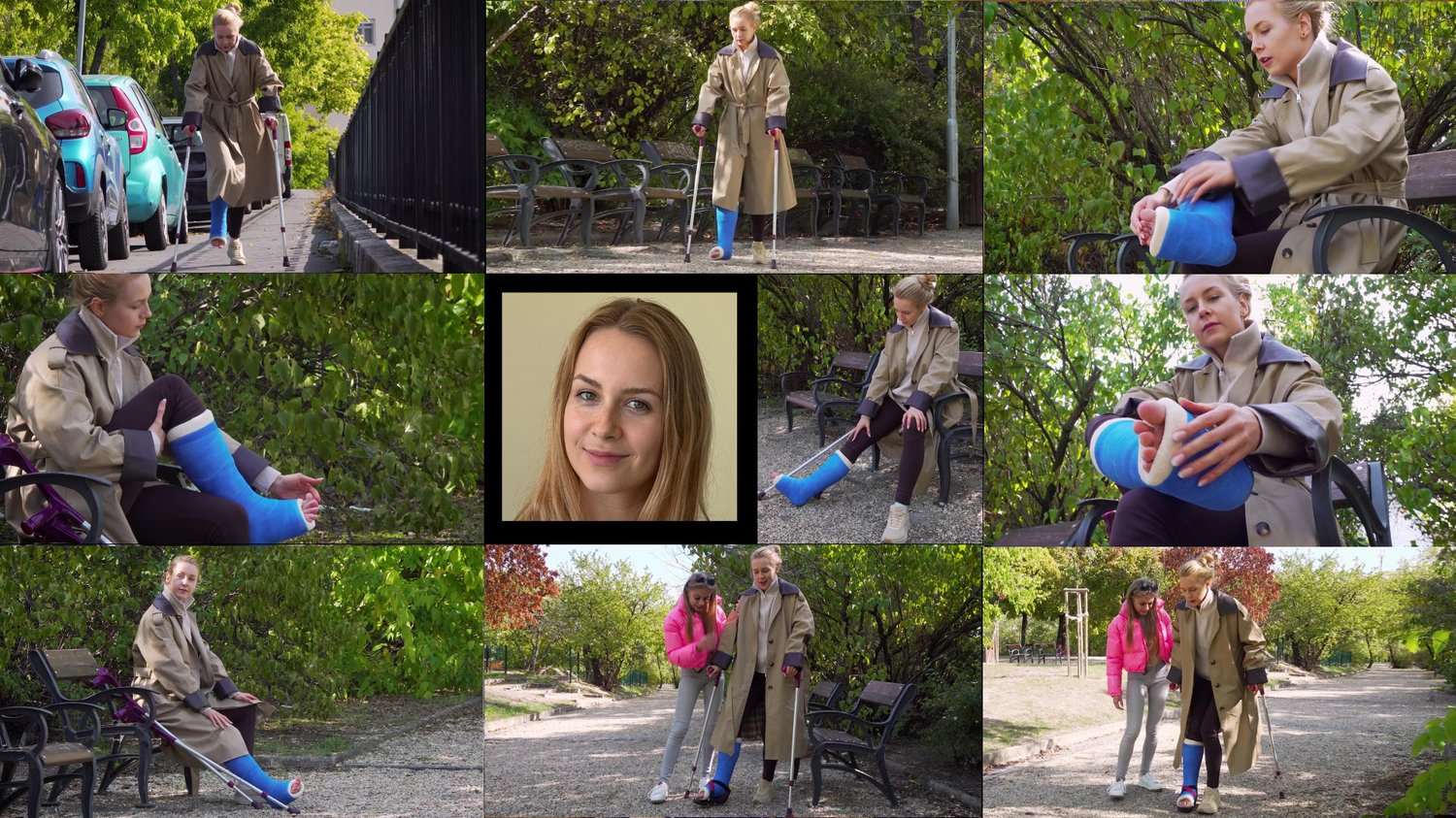 Elizabeta crutches on over to the Doctors office for a visit to check on her leg which has been encased in a cast for a number of weeks. She can put a little bootie on her foot now but pulls it off and puts her bare foot up in the office to get more comfortable. Includes some nice closeups.