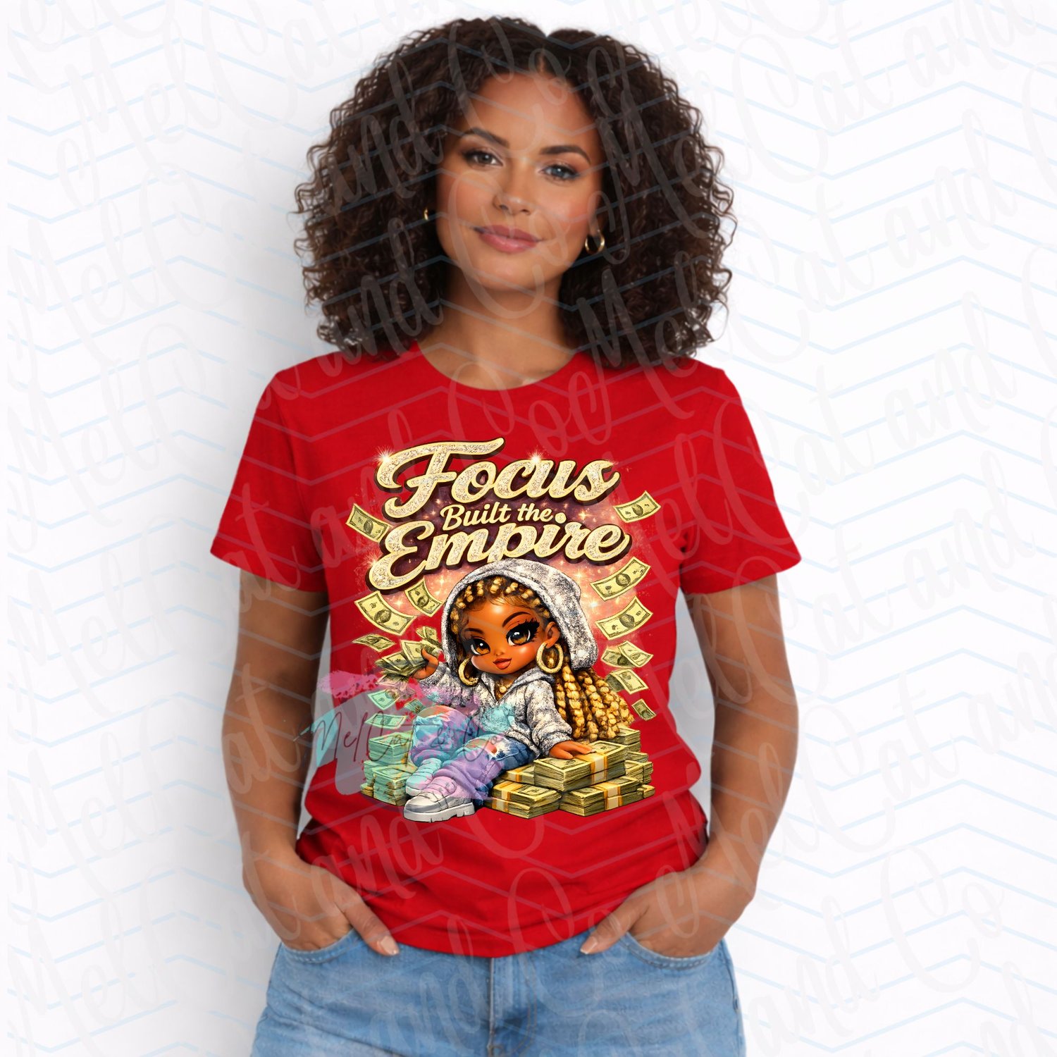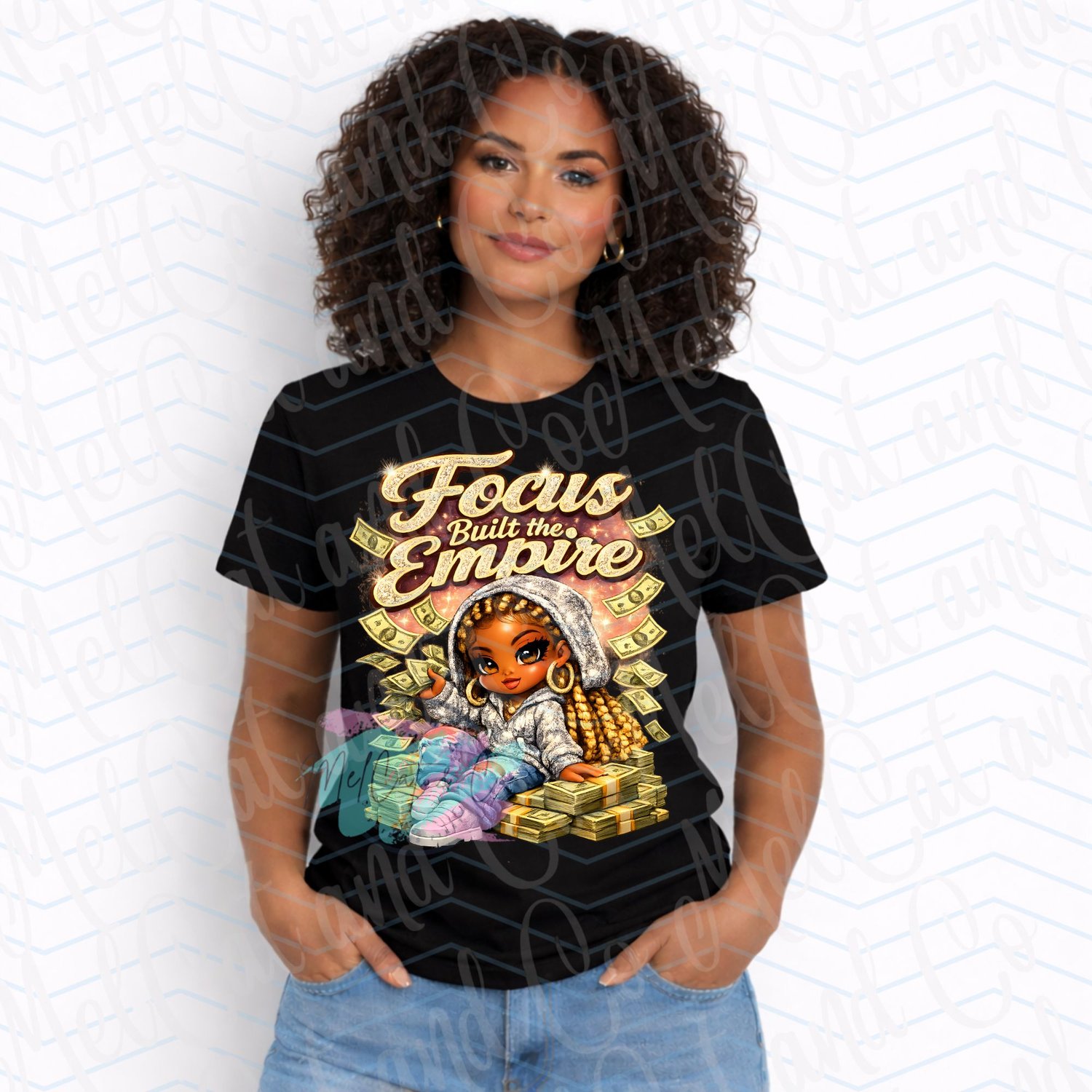 Focus Built the Empire PNG is a bold Afrocentric Chibi Boss Girl Money Design featuring a high-shine cartoon aesthetic and luxury empowerment vibe. This Rhinestone Hoodie Streetwear Sublimation Digital Download is perfect for creating statement shirts, hoodies, and motivational boss babe apparel.