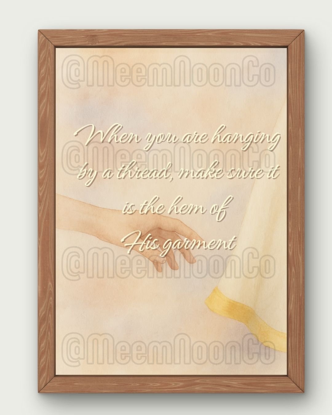 Hanging by a thread print, His hem quote, Christian faith printable, Luke 8:48 inspired art, healing through faith, digital scripture art, Christian encouragement wall print, spiritual comfort quote, A4 bible art, printable devotional gift