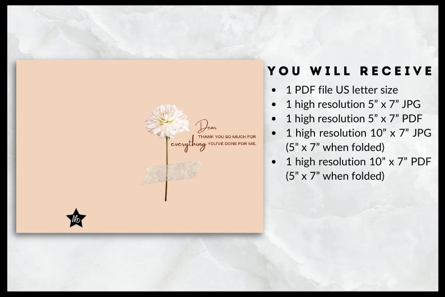 - 1 high resolution 10” x 7” PDF (5" x 7" when folded)