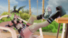 To turn the hammer into a pole, place the head of the hammer on the ground, make a fist gesture with your right hand and pull the trigger.