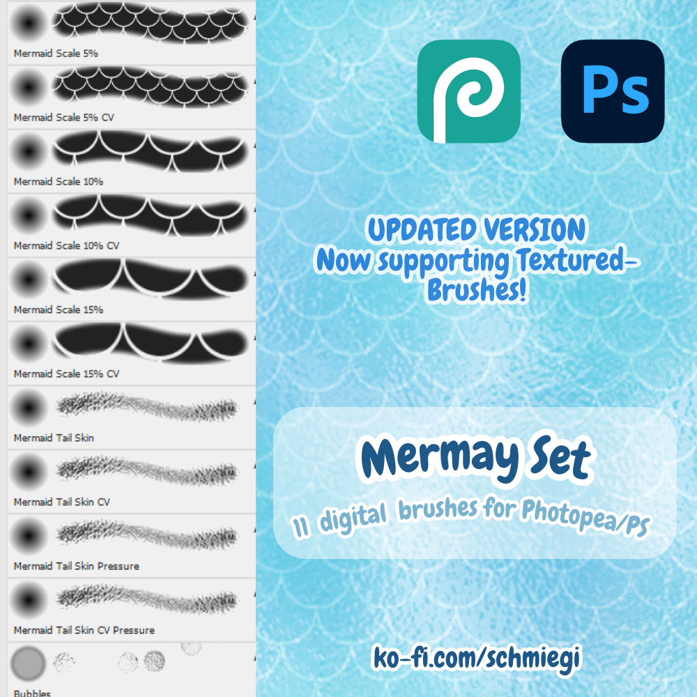 (Updated) Mermaid Scales - Photopea/Photoshop CS+ Brush Set