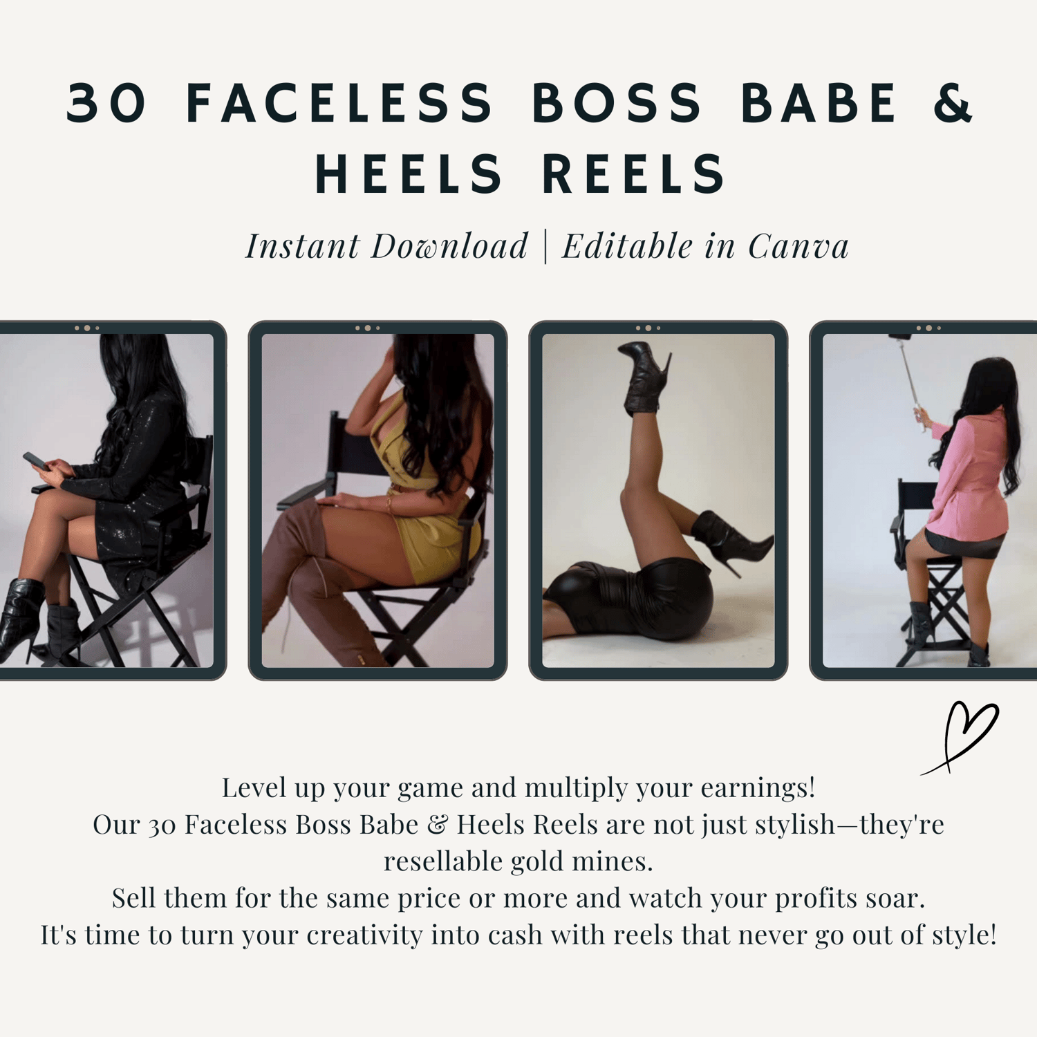 Step into the realm of empowerment and financial freedom with our exclusive collection of 30 Faceless Boss Babe & Heels Reels! These reels are not just about showcasing style and sophistication; they're your ticket to stacking up that cash.
