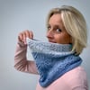 The cowl is designed to widen slightly at the bottom, with a closer fit around the upper neck. The pattern includes instructions for knitting a straight cowl with no shaping, and also for modifying the cowl to give a wider circumference.