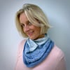 Sample is shown in Eden Cottage Yarns Silverdale 4ply, bundle of 5 miniskeins in colourway Tarn Fade (5 x 20g/80m/87yds 75% superwash superfine Merino wool, 15% nylon, 10% silver stellina). Sample used 69g/275m/300yds yarn in total.
