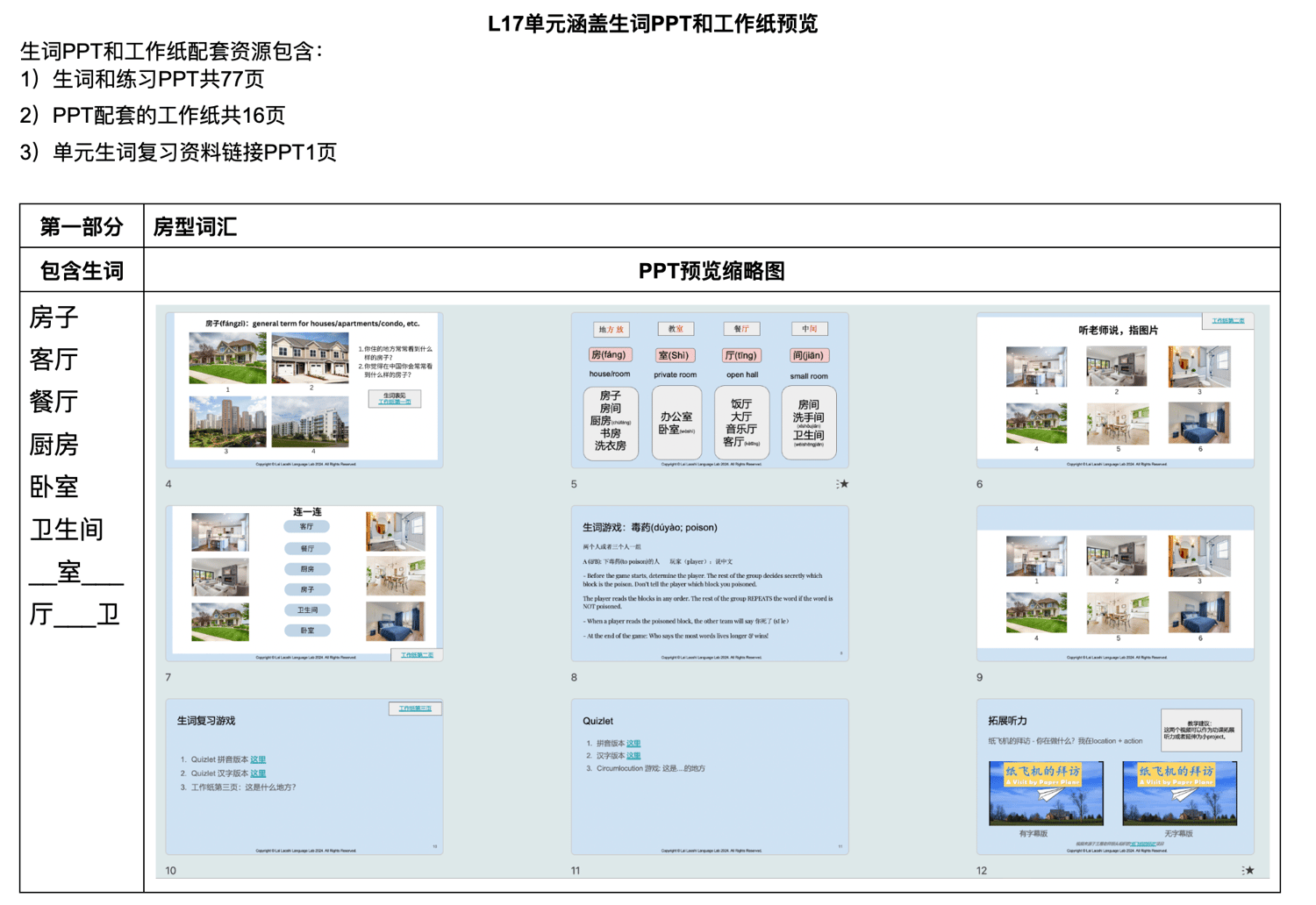 Integrated Chinese Lesson 17 (Rent an Apartment Unit) Vocab PPT + Handout