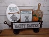 This set is a sign that spring is around the corner! This one comes with a sign that says Cottontail carrot patch, a pallet sign showing which way the bunny trail is, and a sweet mini cutting board sign with u pick carrots, also comes with a Happy Easter sign and two hooks for the front of the wagon. Can be purchased painted or BlankĀ