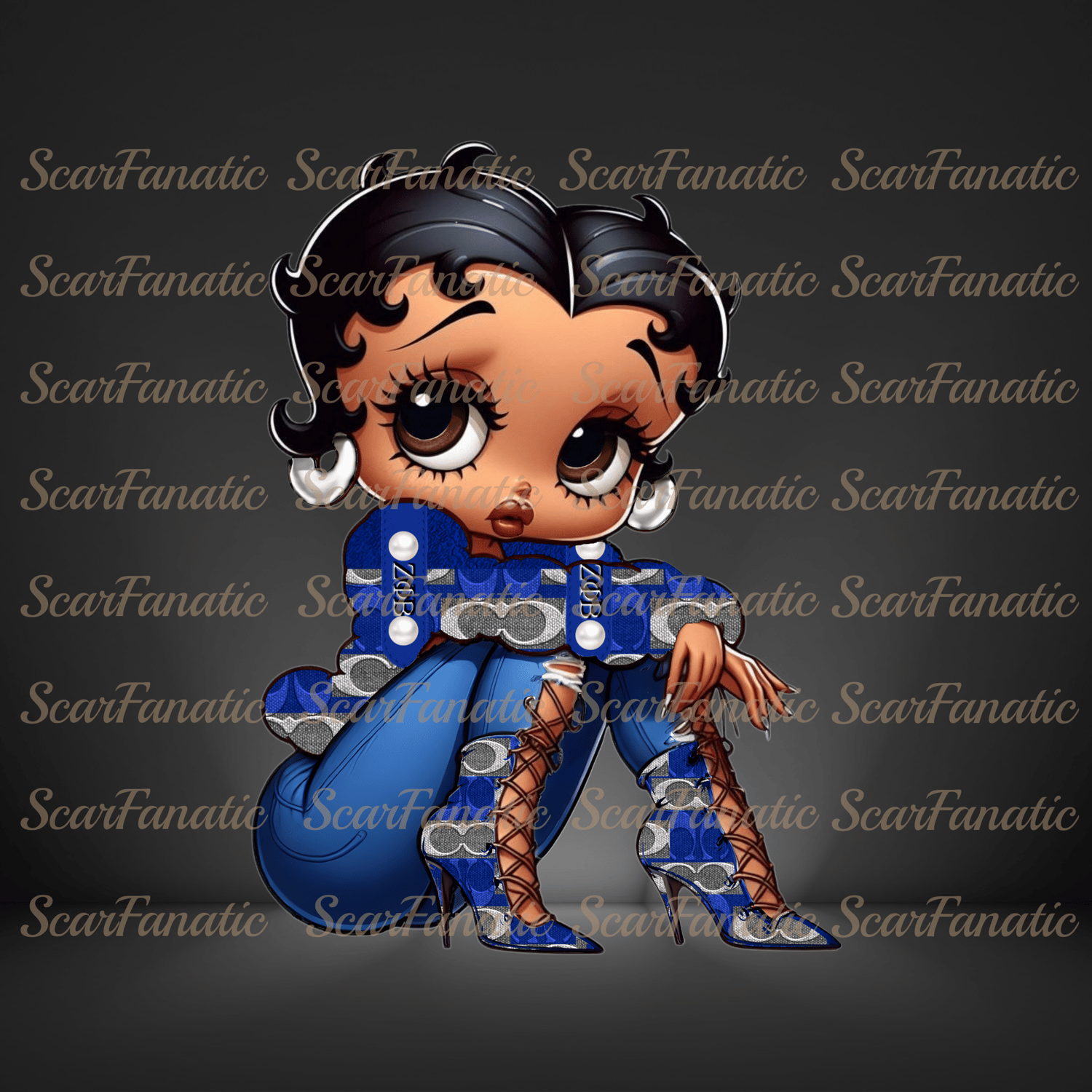 Black Betty Boop in Zeta Phi Beta jacket and heels, blue jeans, high heel boots, Sublimation, PNG, DTF, 300DPI, high resolution