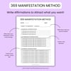 Unlock the power of the Universe and manifest your desires with our beautifully designed 369 Manifestation Worksheet. The 369 manifestation technique, a well-known approach that aligns your intentions with the potent energies of the numbers 3, 6, and 9. This enhances the manifestation process and accelerate your journey to success.