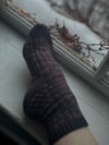 A pattern designed for a sock set; an Esker is a long ridge of gravel or sand formed by glaciers; this texture of the sock is inspired by this natural phenomenon. Parts of the Denali Highway in Alaska are build on eskers!
