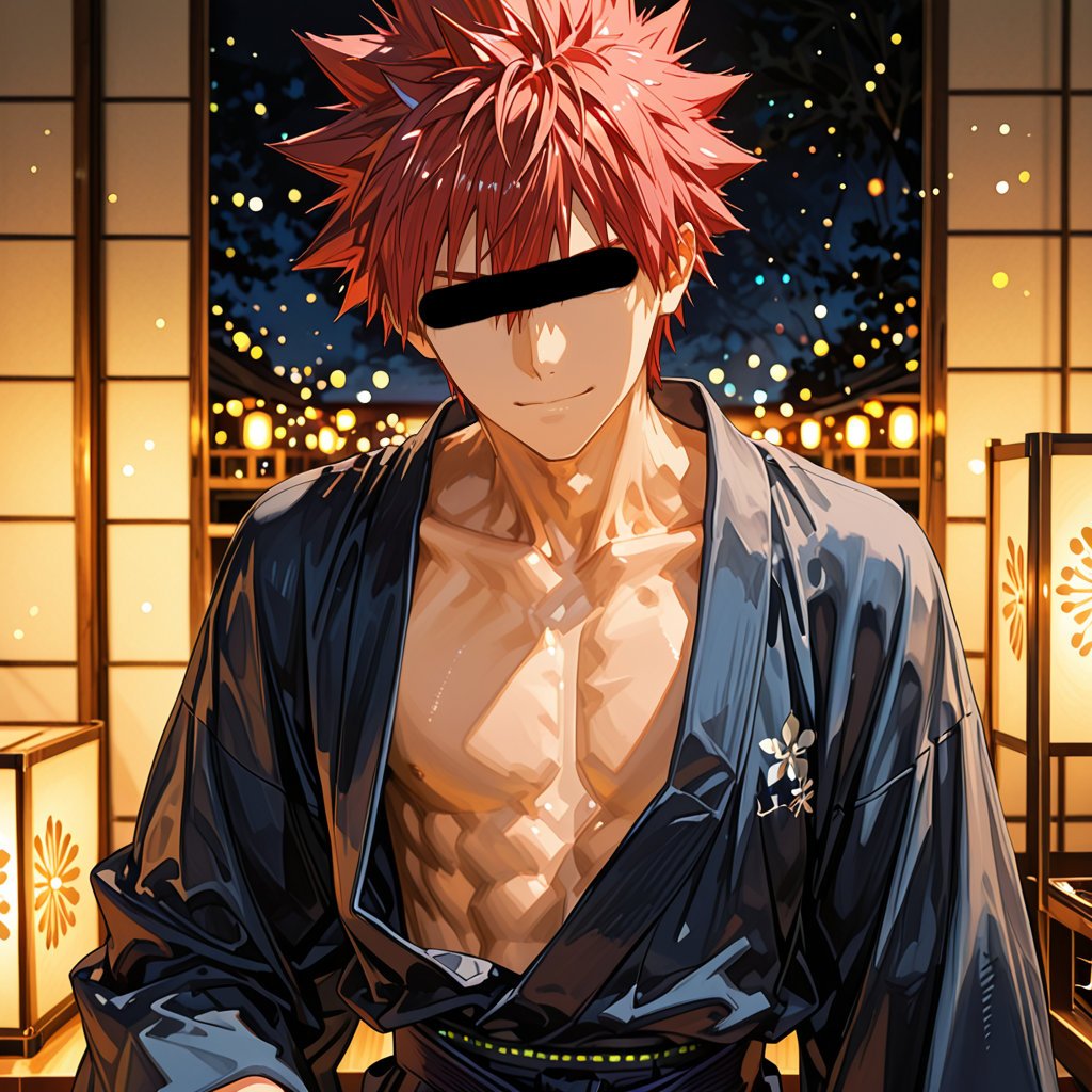日本の正月をテーマに、着物を着用している男性を、キャラクターごとにお任せ作成しました。男らしいキャラクターの魅力を思い切って表現しました。