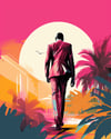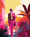 A captivating artwork showcasing a fashionable man in bold red attire, brought to life with striking pop art aesthetics. This vibrant piece exudes confidence and style, making it a perfect statement for any creative project or decor.