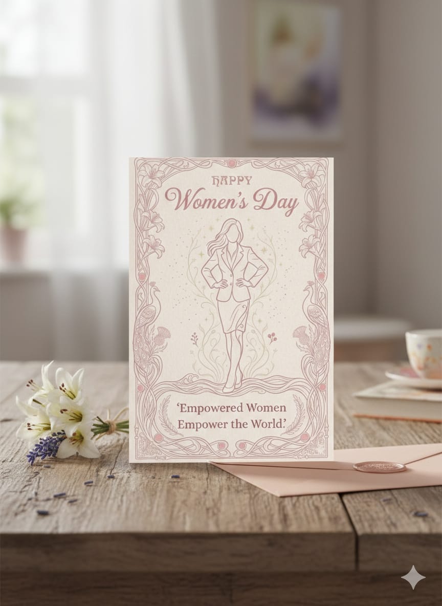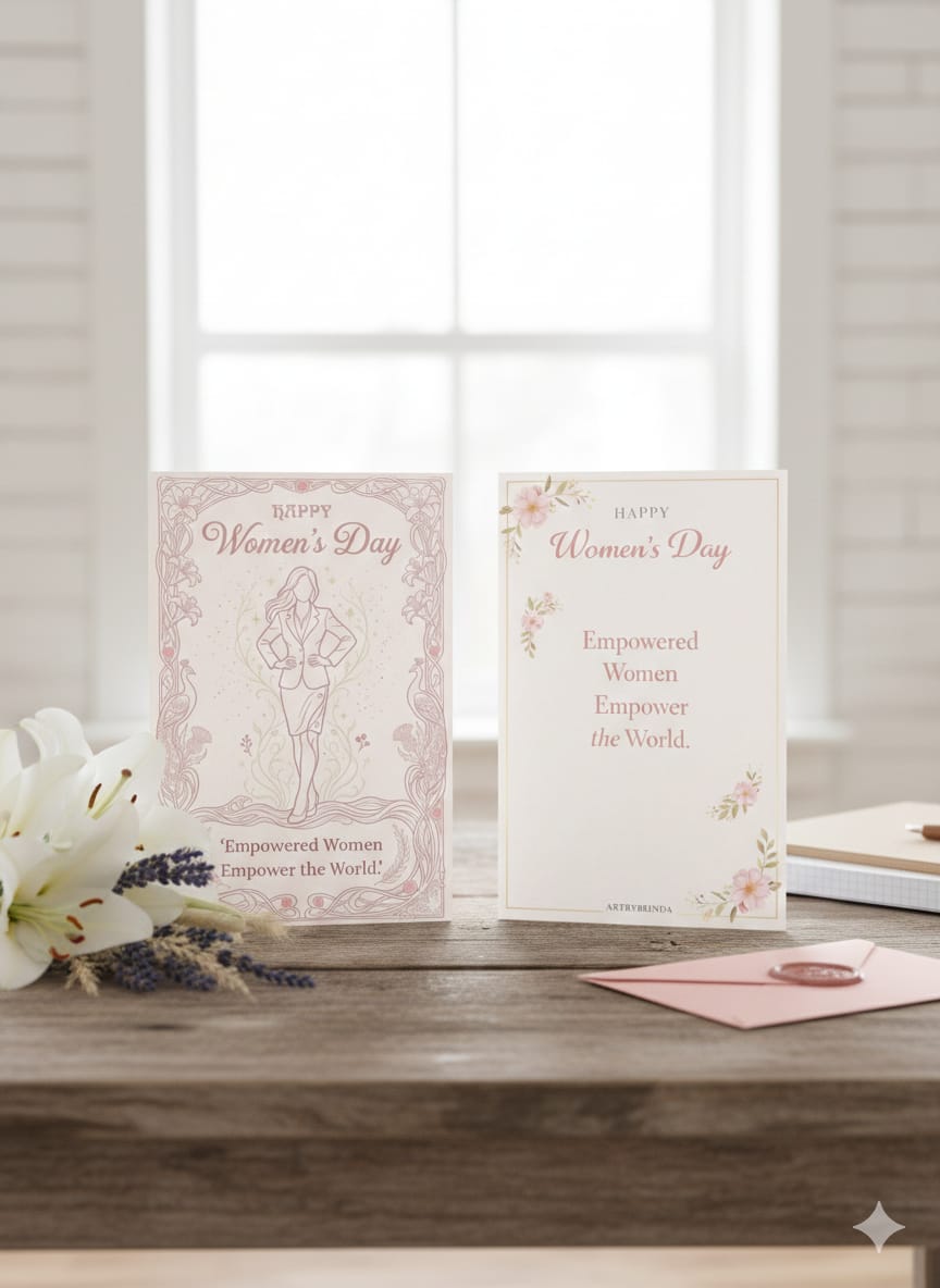 This soft and minimal 2-design collection is perfect for gifting, appreciation messages, office celebrations, or personal notes honoring empowered women.