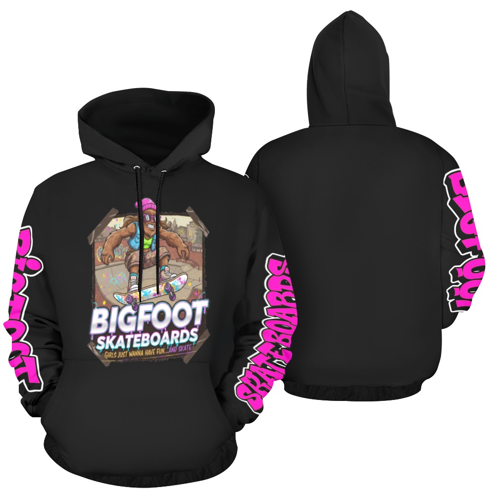 Bigfoot Skateboards-Girls Just Wanna Have Fun and Skate Hoodie for Women