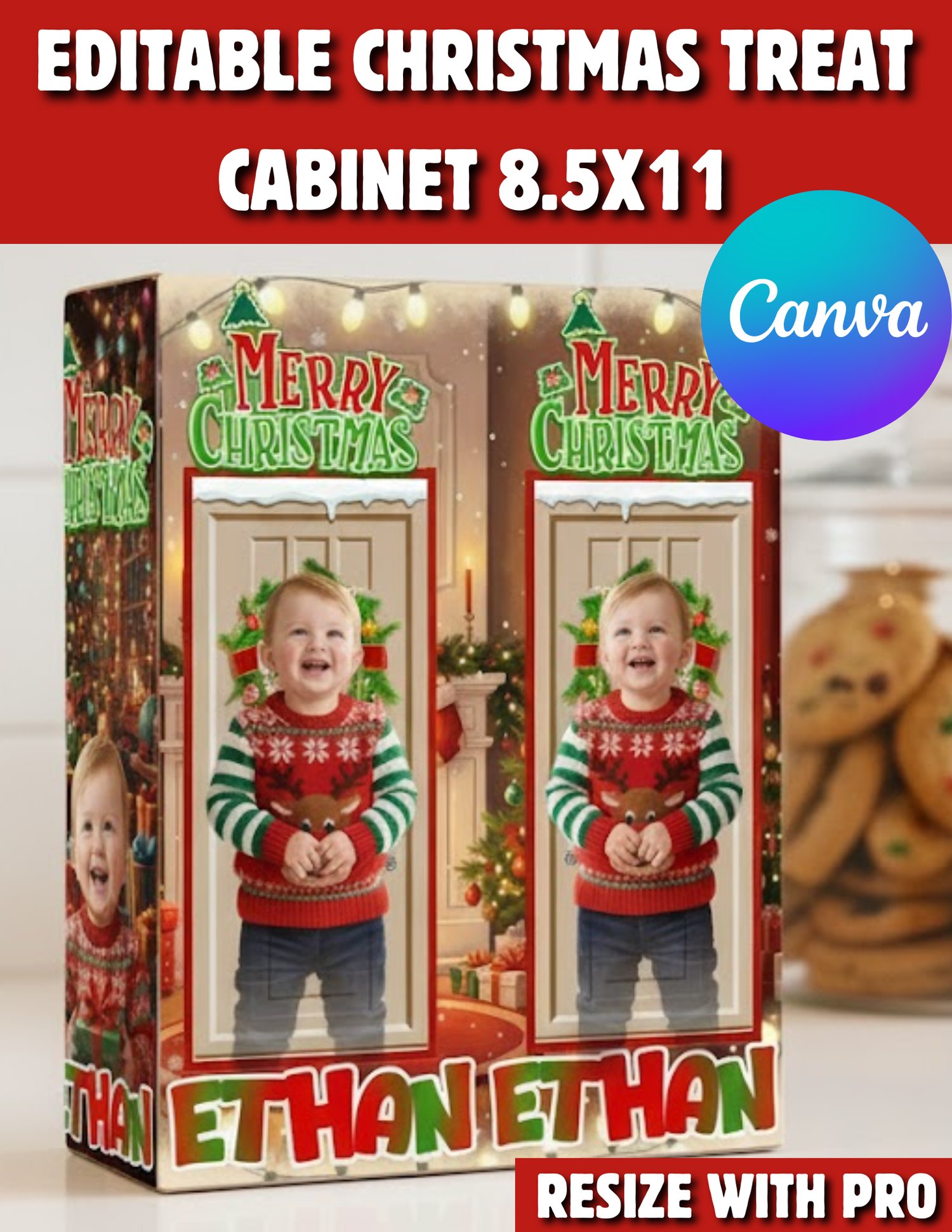 Editable Christmas Cabinet Treat Box