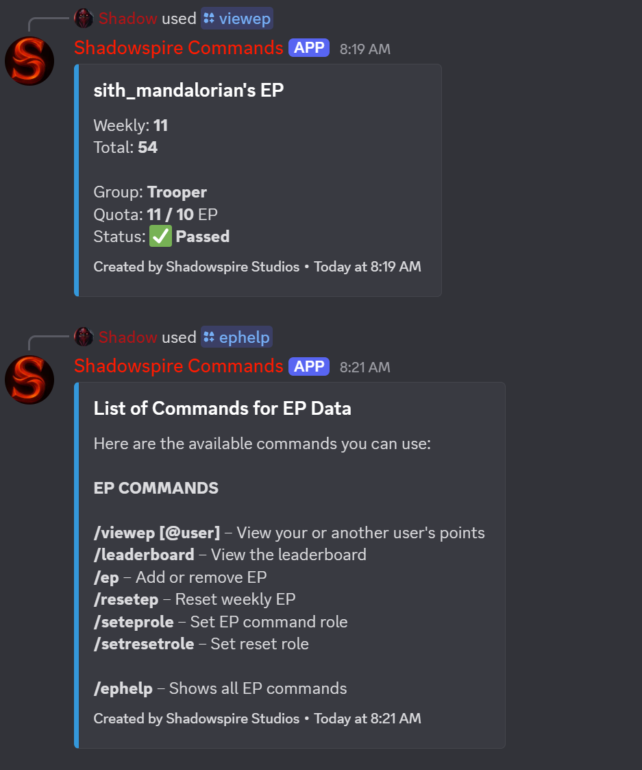 The EP Bot makes it easy to manage points, officer quotas, and member rankings all inside Discord.