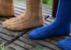 Ideally suited to a semi-solid or solid sock yarn, this is a project to conjure autumn nights: long evenings in front of a fire, with a special fibre in a jewel-like colourway. The finished item is elegant and richly textured, whether worn hidden in your winter boots, or on show.