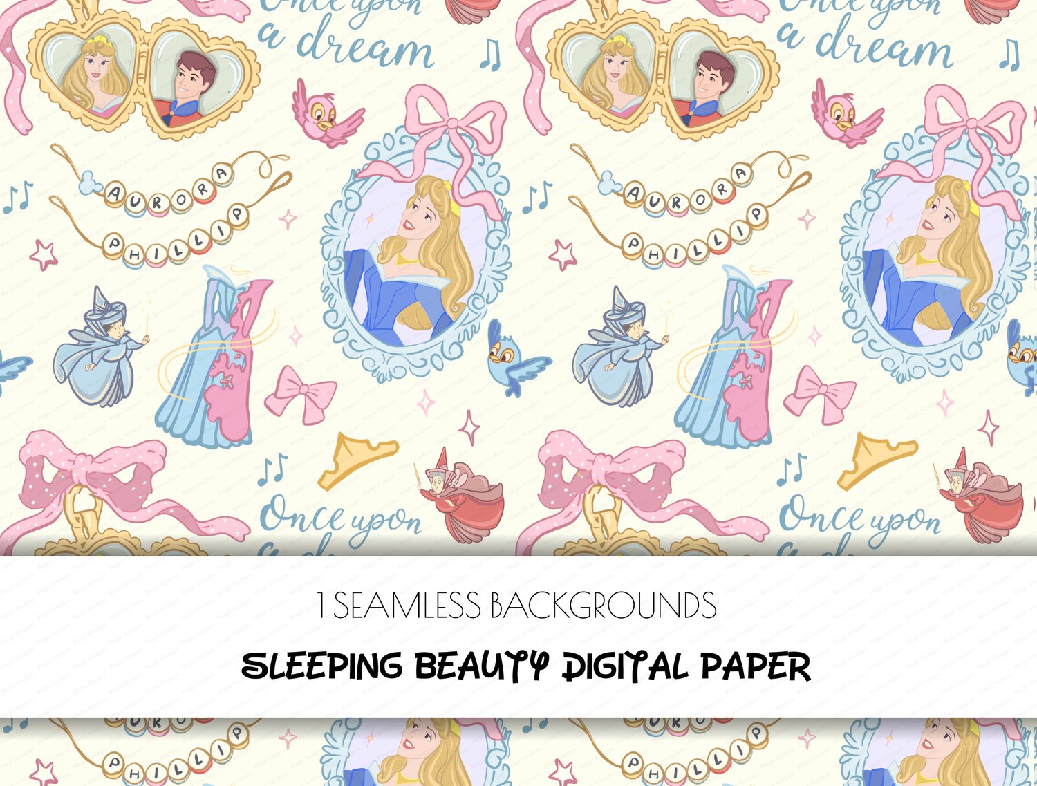 This Princess Aurora, Sleeping Beauty, Seamlessbackground will be perfectly sutable for projects such as printing projects, sublimation,party invites, scrapbooking, greeting cards !!!