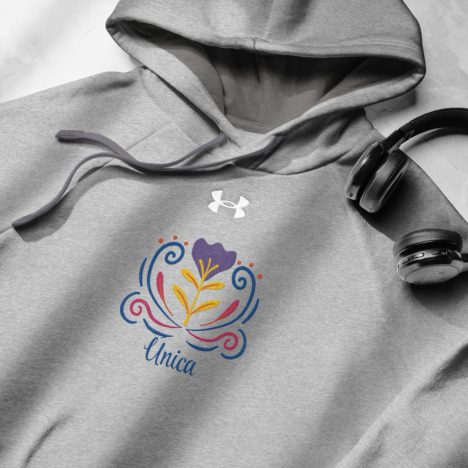 Abrígate con estilo y autenticidad con nuestra sudadera Under Armour® de diseño exclusivo. Esta prenda, perfecta para cualquier ocasión, fusiona la comodidad de la ropa deportiva de primera calidad con un toque de arte y feminidad.