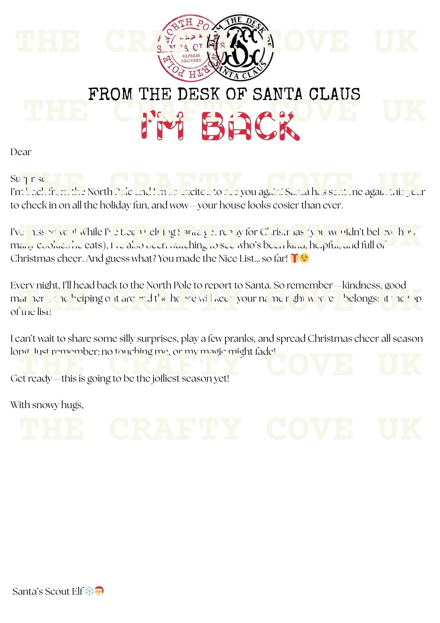 The name is left blank for you to add child(ren) name/s and Elf Name/s