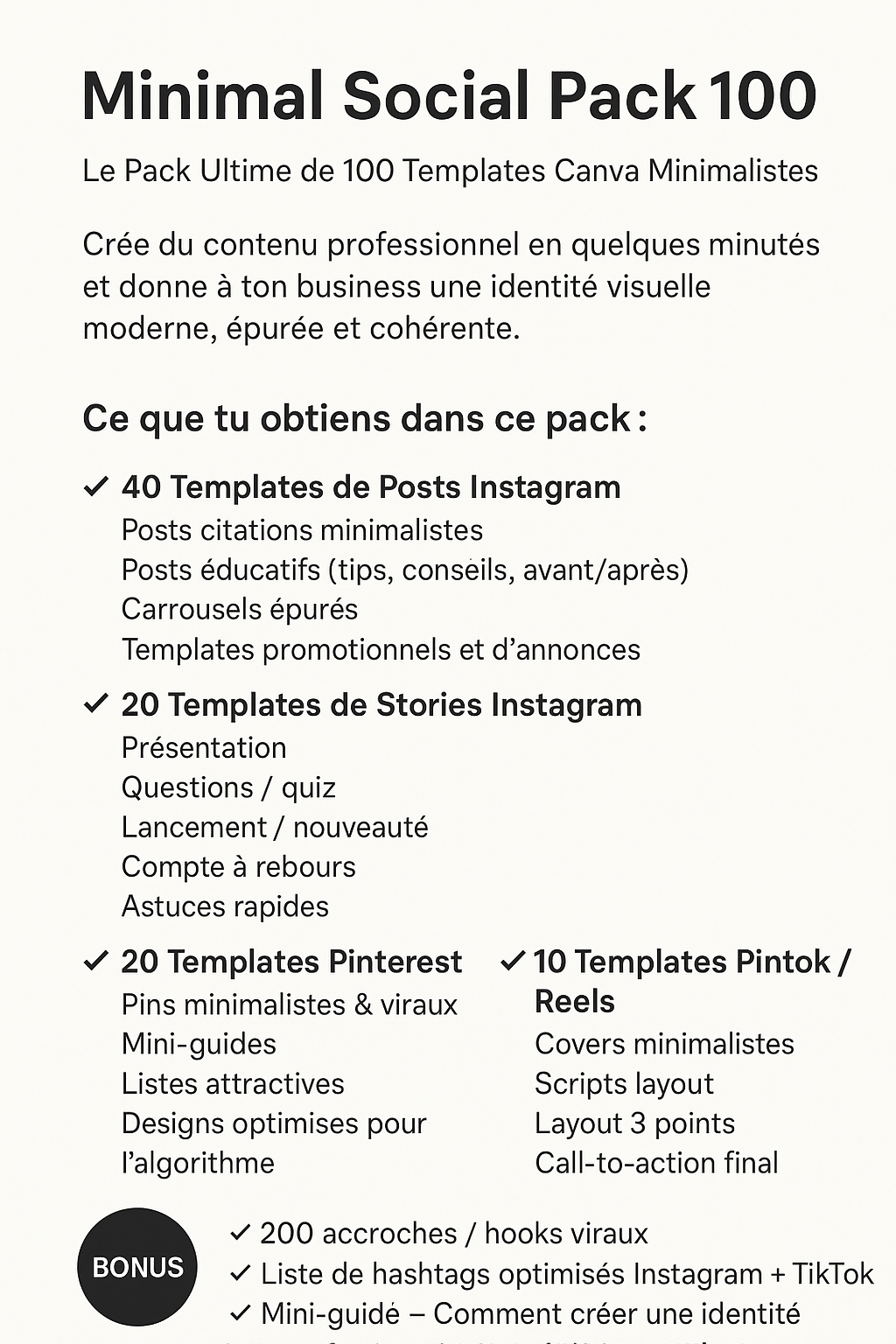 Idéal pour entrepreneurs, créateurs de contenu, coachs, freelances ou toute personne souhaitant un feed esthétique et cohérent – sans compétences en design.