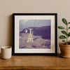Travel back to the 1960s with this rare color photograph of the La Flégère cable car near Chamonix, France. Suspended high above the alpine terrain, the gondola glides over a rocky landscape framed by mountains and forests. A nostalgic piece of ski and mountain heritage, perfect for vintage lovers, ski lodge decor, or alpine travel fans.