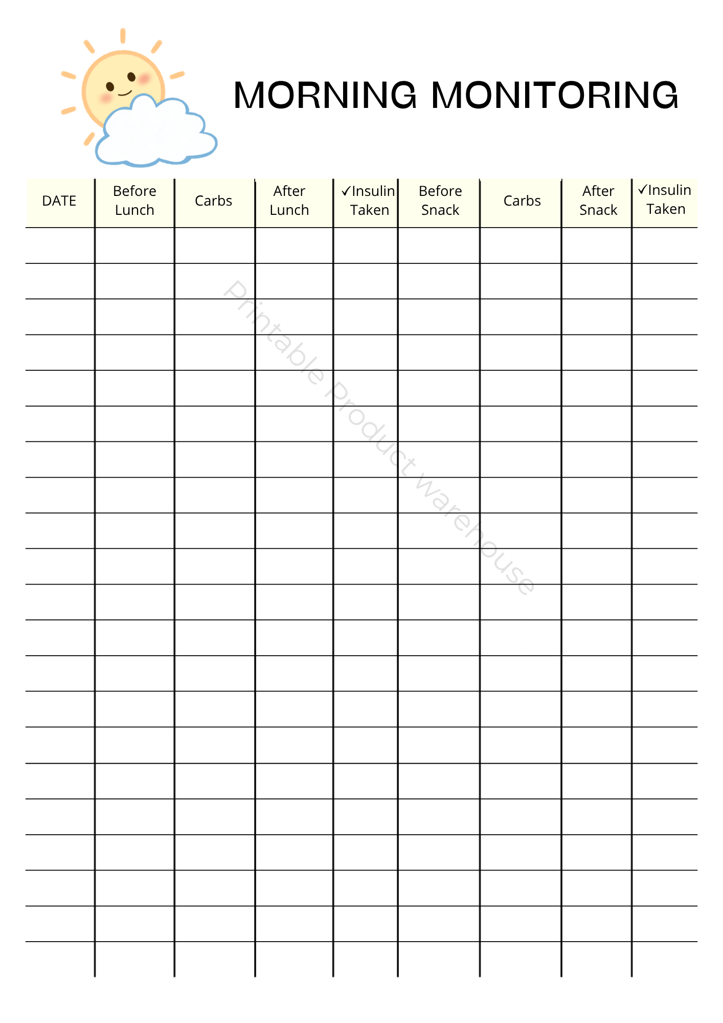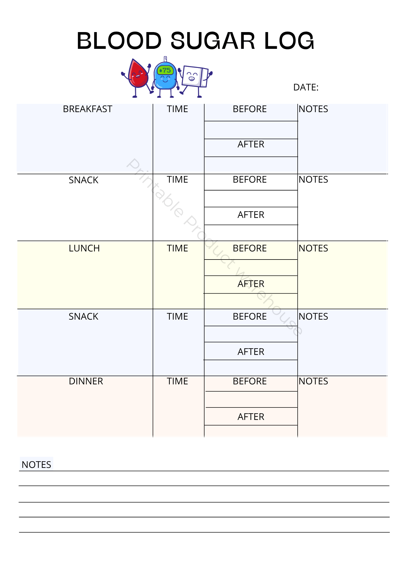 ✔️ Daily blood sugar log (morning, afternoon, evening)