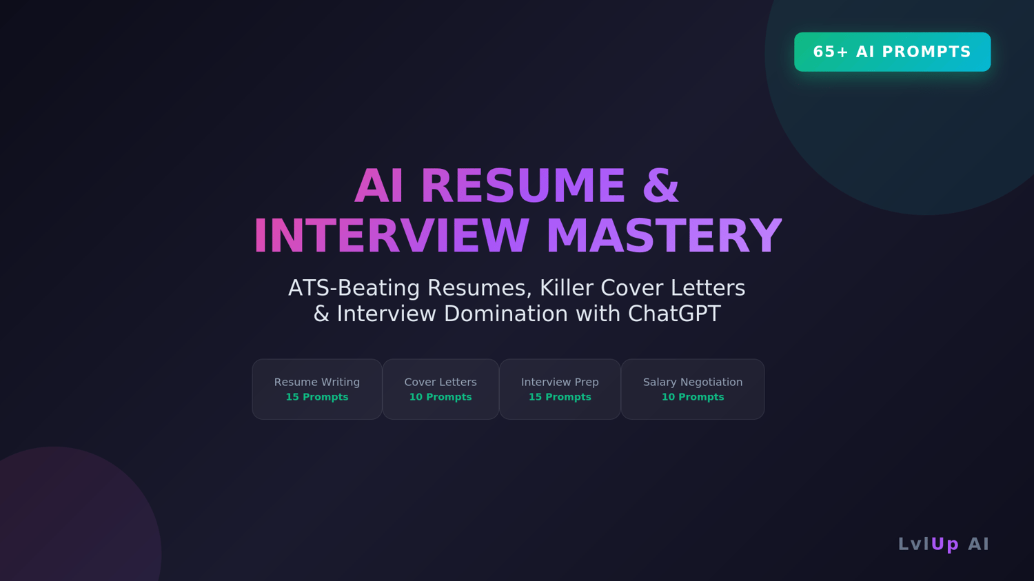 The AI Resume & Interview Mastery toolkit gives you 65+ expertly crafted ChatGPT prompts that turn AI into your personal career strategist - crafting perfect resumes, nailing interviews, and negotiating salaries like a pro.