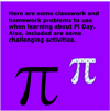 This resource includes problems to be used after learning about Pi Day for classwork, homework, or enrichment. (7 worksheets)