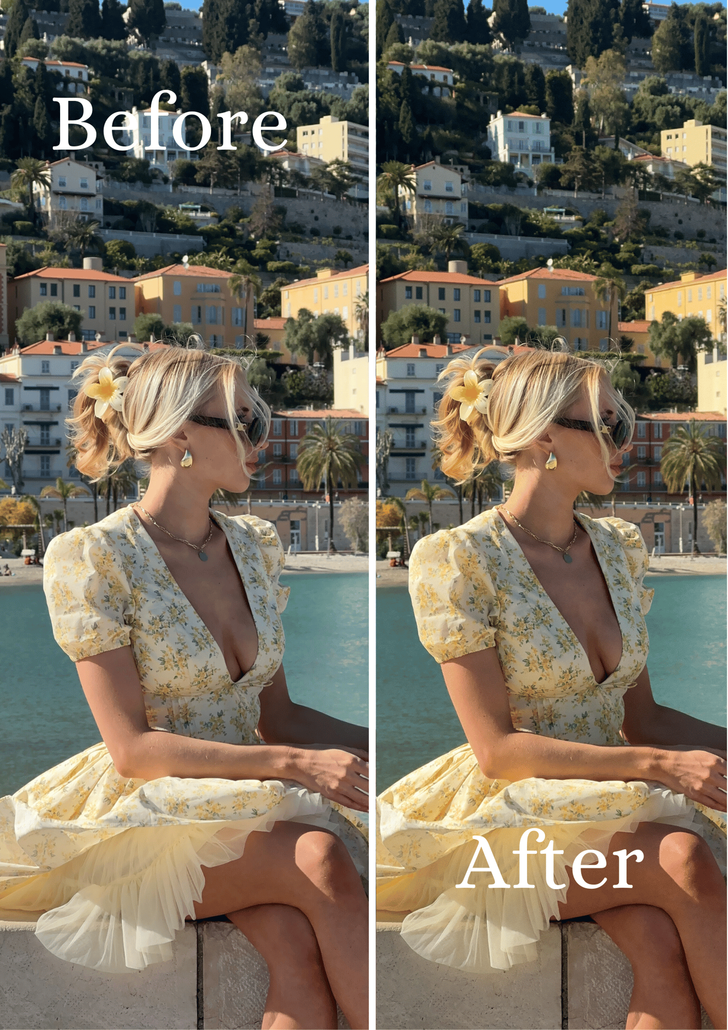- St. Tropez: Transport yourself to the French Riviera with the St. Tropez preset! Inspired by the dreamy Côte d'Azur and Euro Summer elegance, this preset instantly elevates your photos by adding vibrant color and depth for eye-catching, Pinterest-worthy perfection.