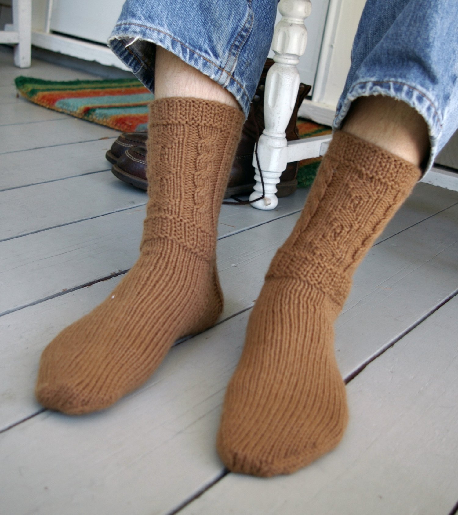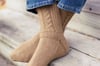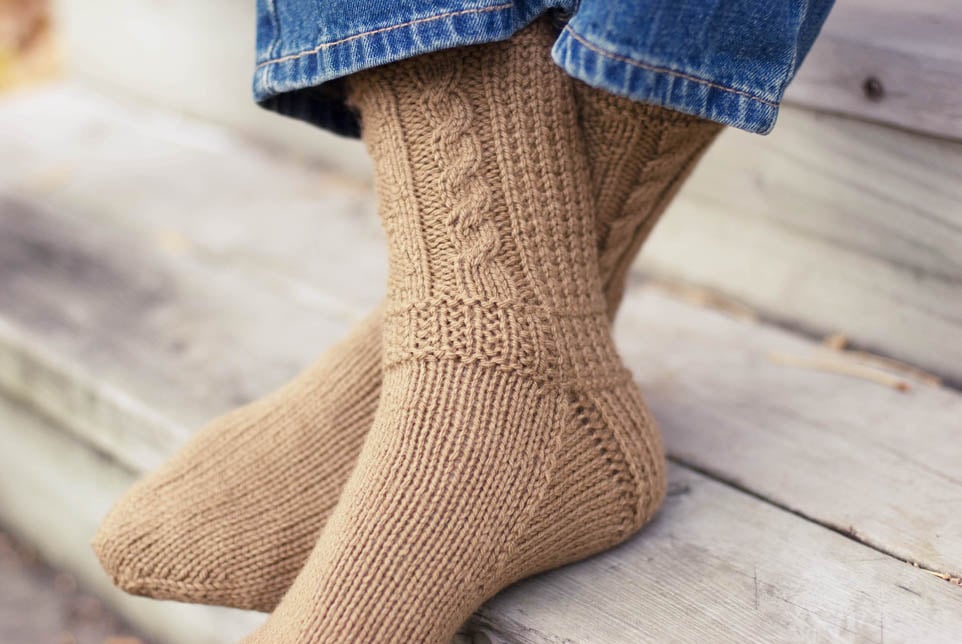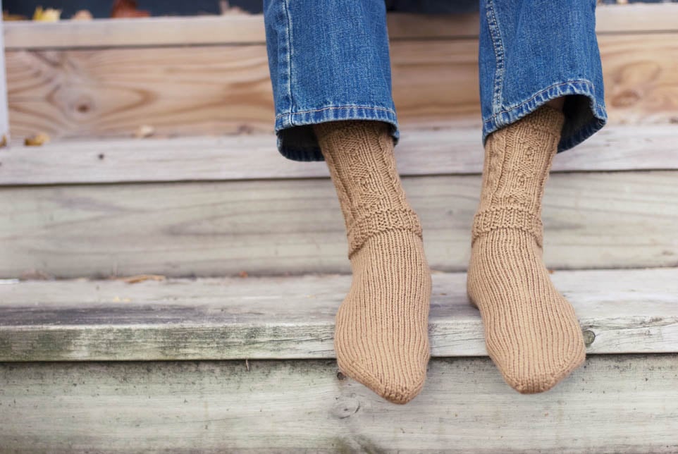 It is said that many of the stitches used in Aran knitting are lucky symbols for the wearer. For instance, diamonds represent wealth and success; cables are for strength, safety, and luck. This pattern incorporates such traditional designs into extra-cozy hiking socks loaded with good omens for the new year. Knit in worsted weight at a tight gauge, they are a great quick-knit for men or women.