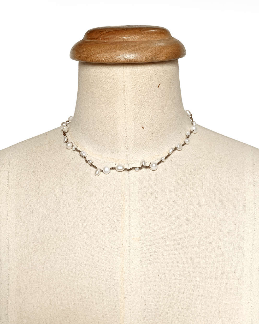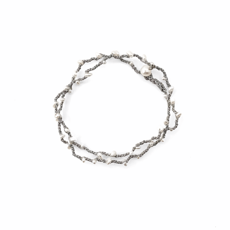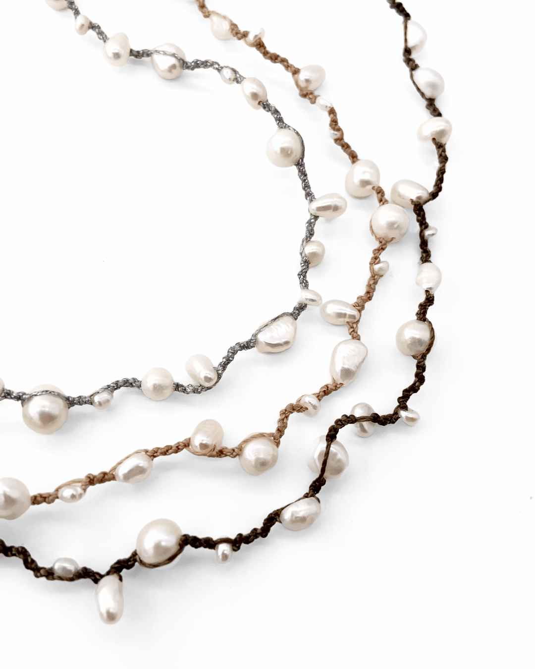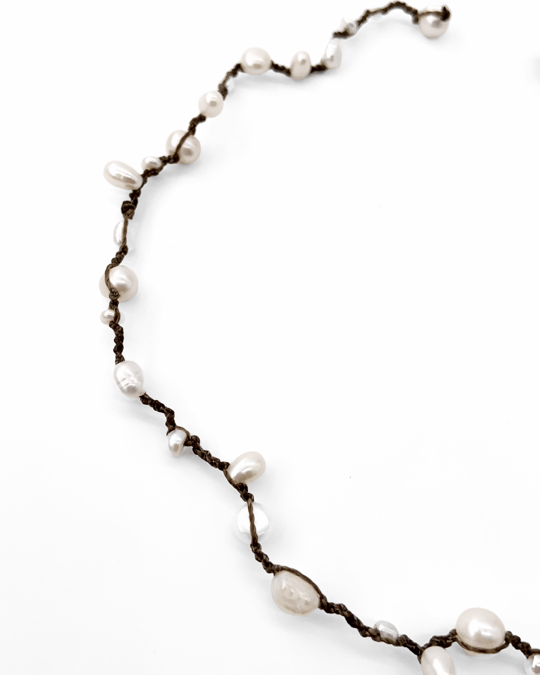 Crafted with natural freshwater pearls and hand-knotted South American waxed cord, this piece is designed for high-summer adventures.