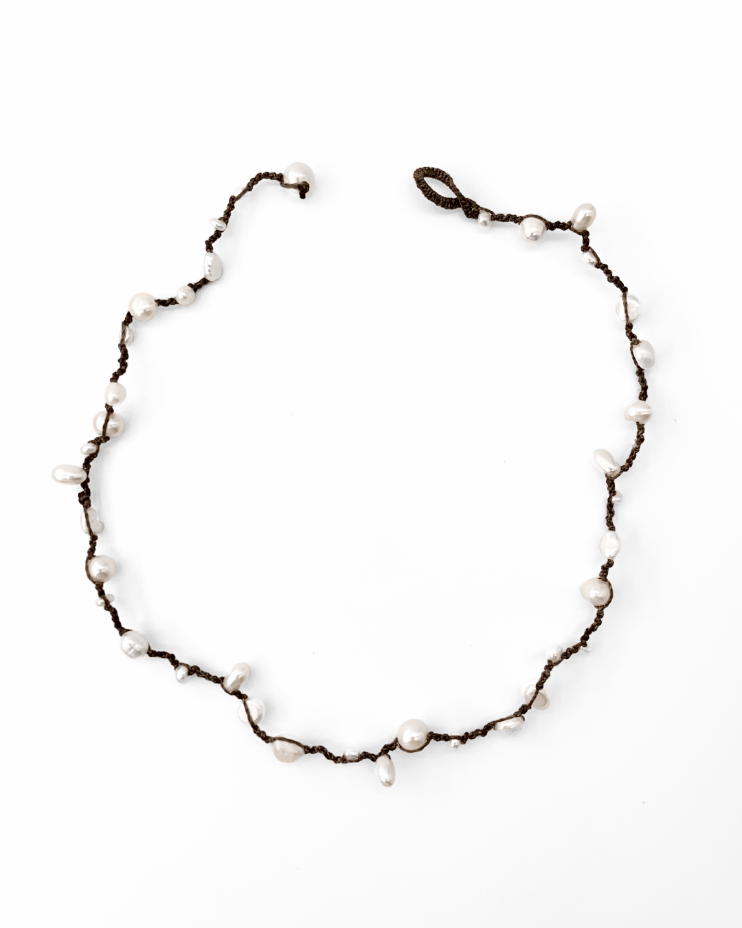 The unique closure lets the pearl slip through the loop and gently cinch the cord into place, creating a naturally snug fit.