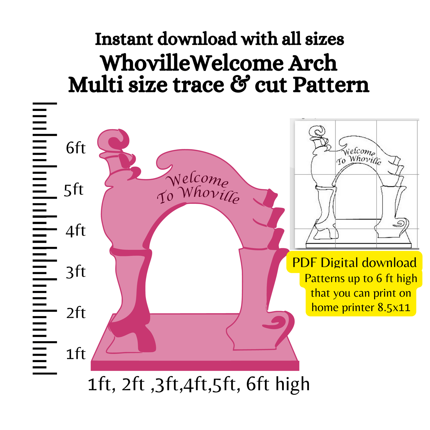 Life size, Large Whoville home welcome sign Arch, pattern, 1ft 2ft 3ft 4ft, 5ft, 6ft 7ft 8ft, silhouette Template stencil pattern, Christmas village scene, print trace & cut pattern, Xmas yard art, trace and create Décor, Digital Download