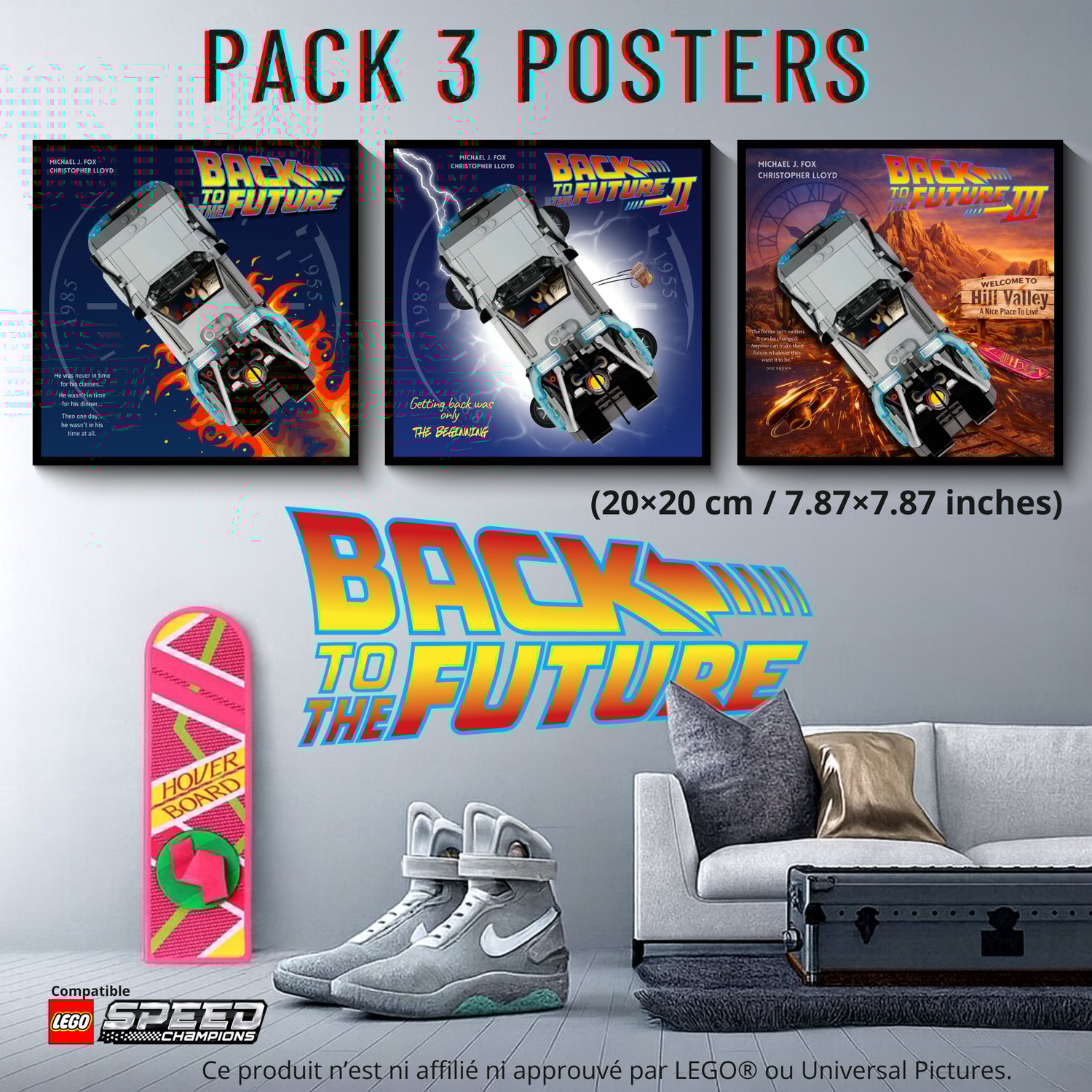 Back to the Future Trilogy – LEGO-compatible Display Poster Pack (3 Posters – 20×20 cm / 7.87×7.87 inches)