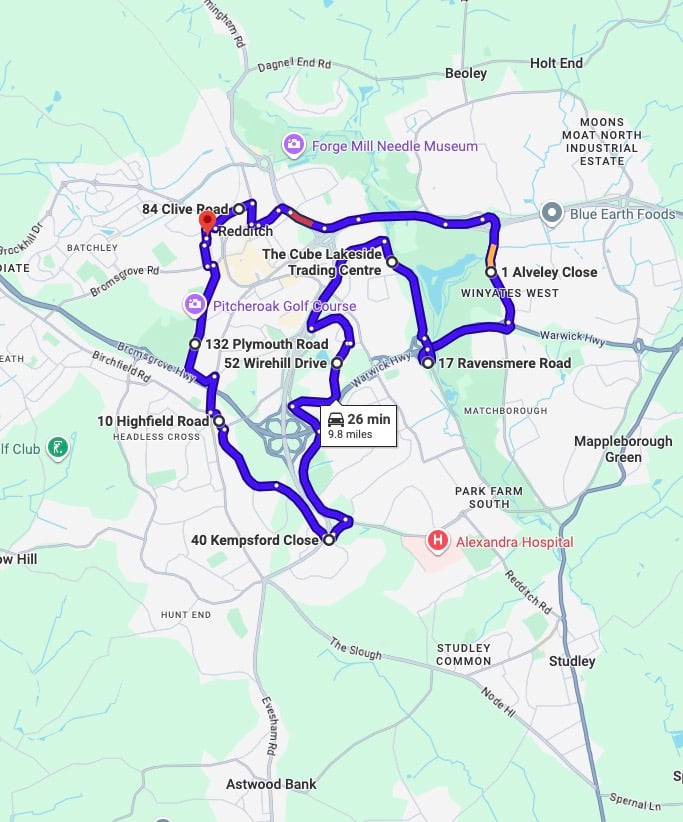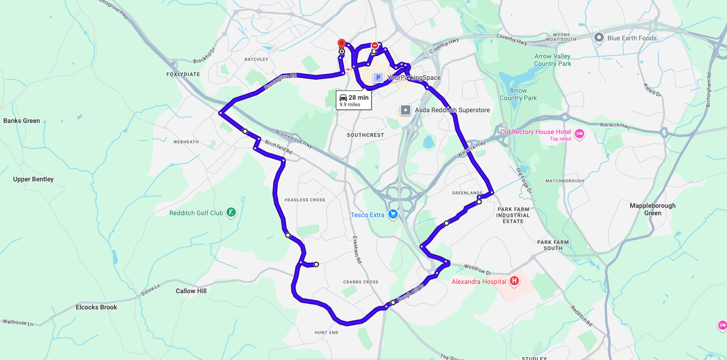 Practise real driving test routes in Redditch before your exam – open directly in Google Maps