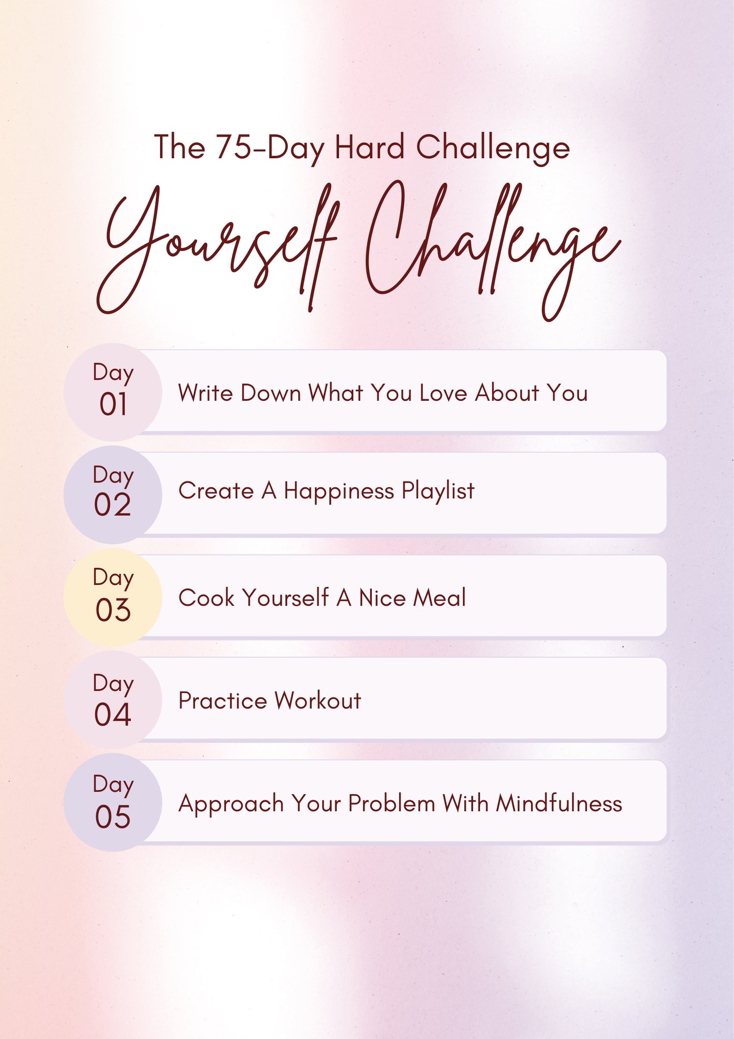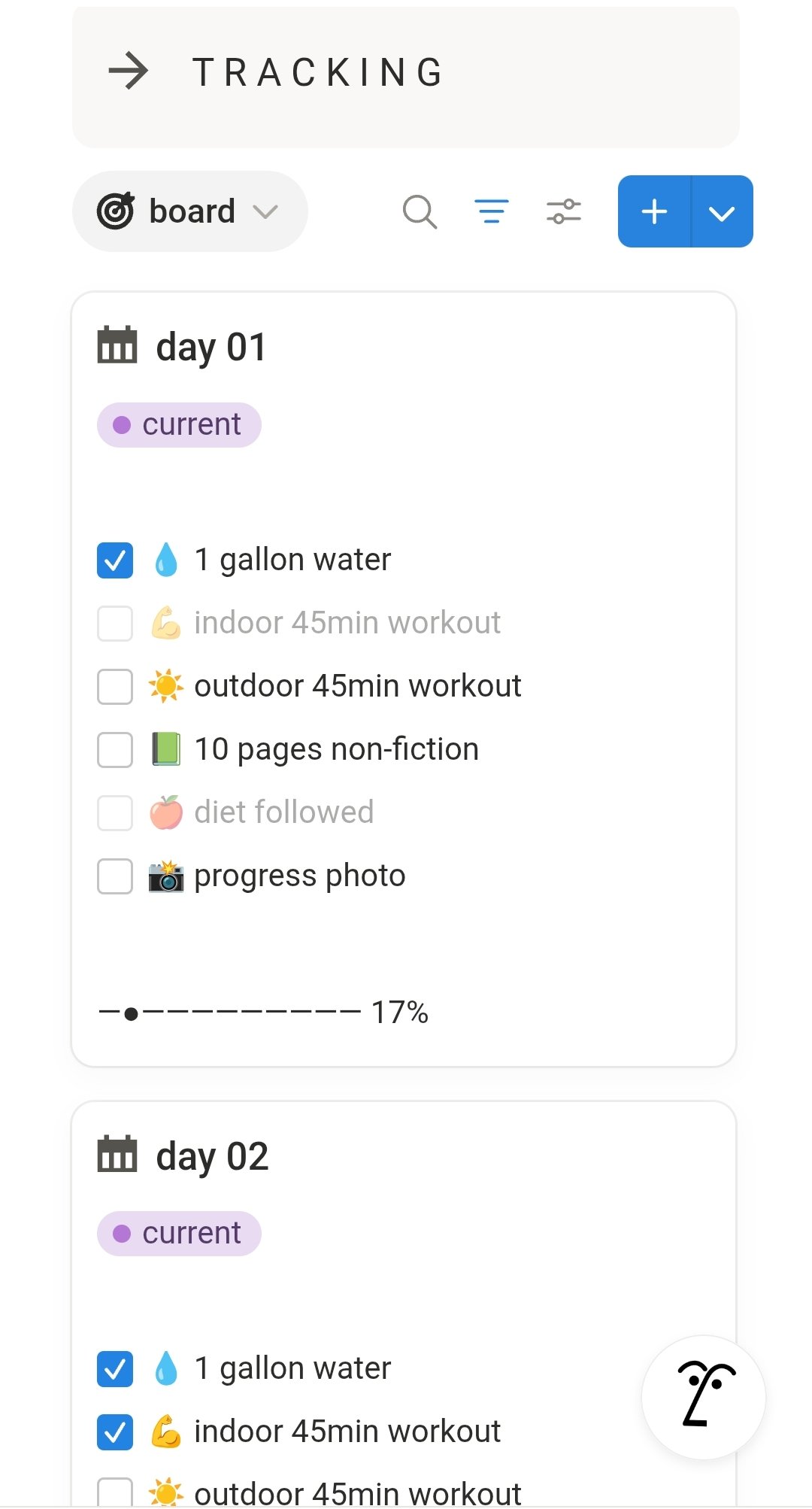 ✓ Daily challenge tracker for 75 days