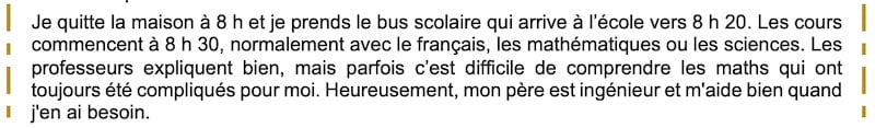 French grade 9 or 10 (reading): une journée scolaire typique (a typical school day)