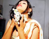 Sensual Hairplay wearing gajra and white saree in kerala style