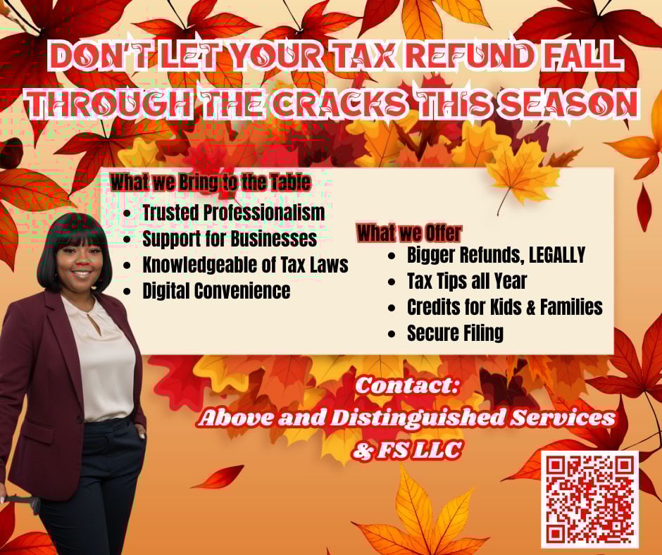 Capture attention this fall with the “Don’t Let Your Tax Refund Fall Through the Cracks” flyer template. Designed with seasonal autumn visuals and a professional layout, this flyer is the perfect way to promote your tax services while building trust with clients.