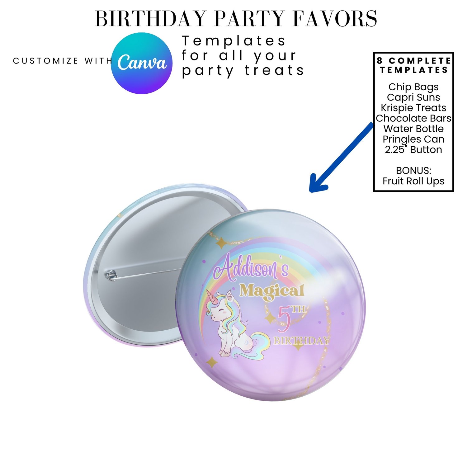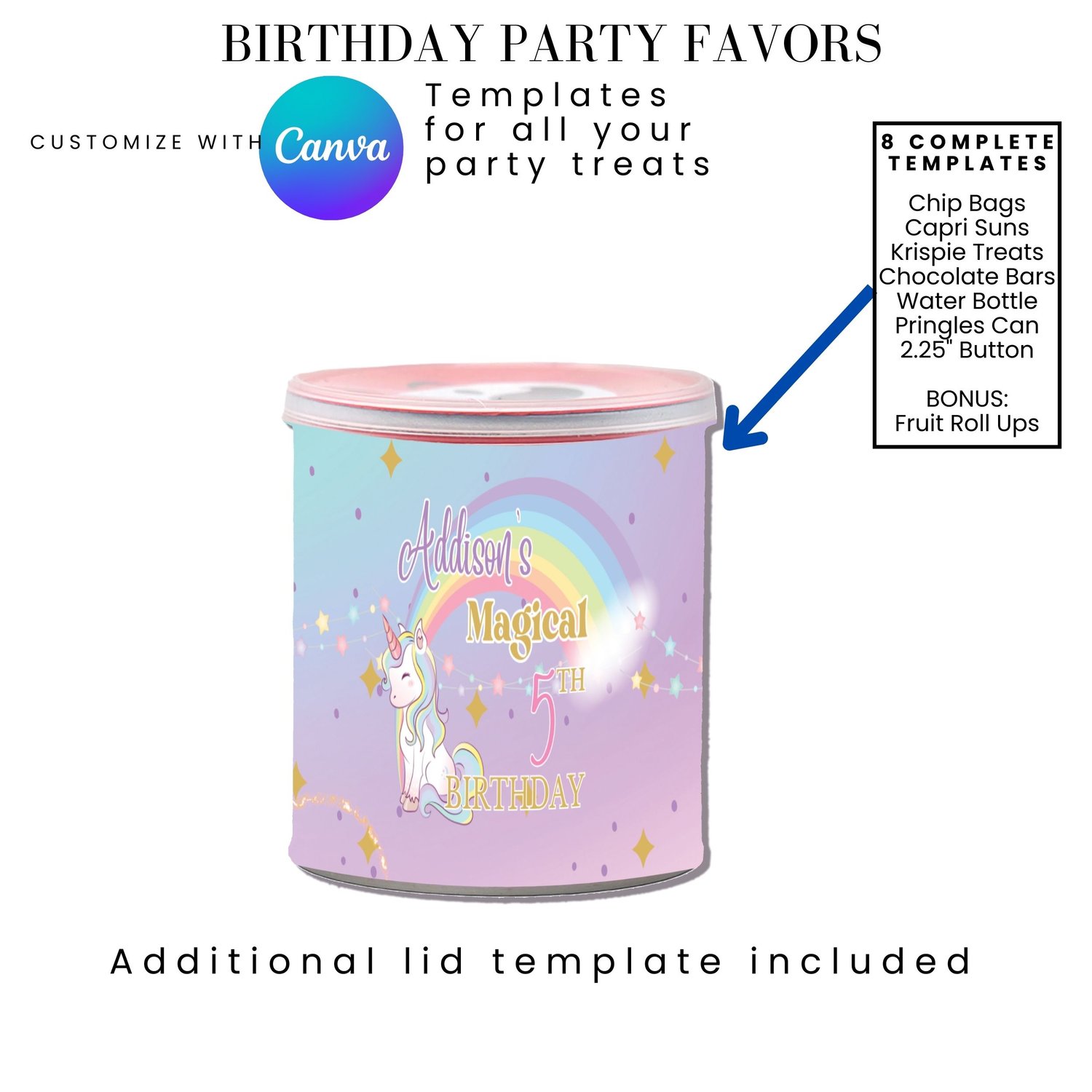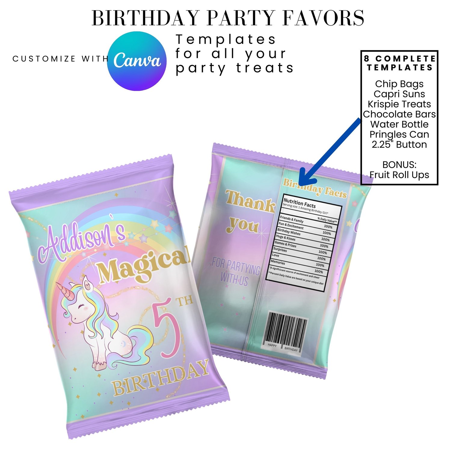 This Favor bundle is made to match the Magical Unicorn Invitation Template: