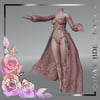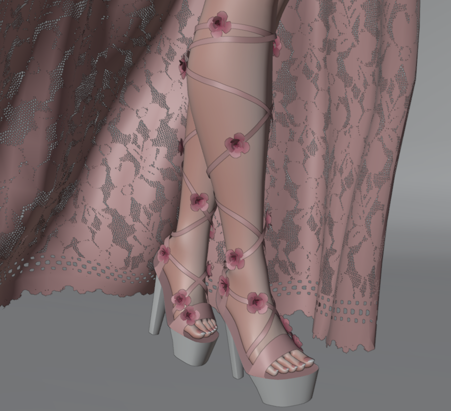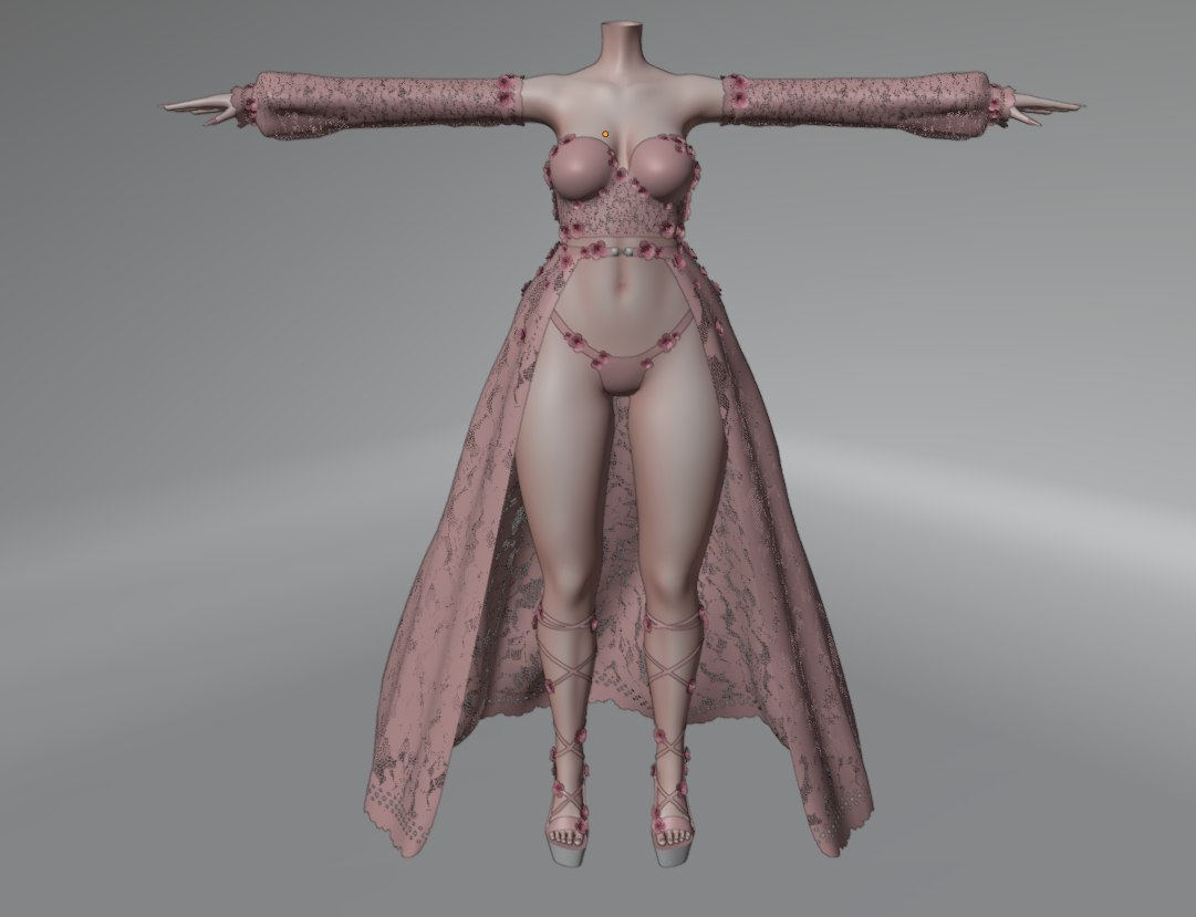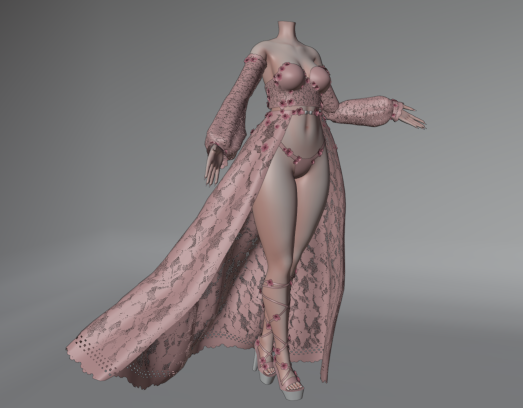 A hella cute lingerie set featuring adorable flower detailing. Bralette, panties, sleeves shoes and an overskirt. Skirt has bones for physbone use! Recommended you set the texture quality up in unity.