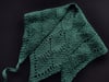 When meeting gauge and working all rows in the pattern, the triangle measures 60 cm across the top and 28 cm in depth, due to the slight elasticity of the lace pattern.