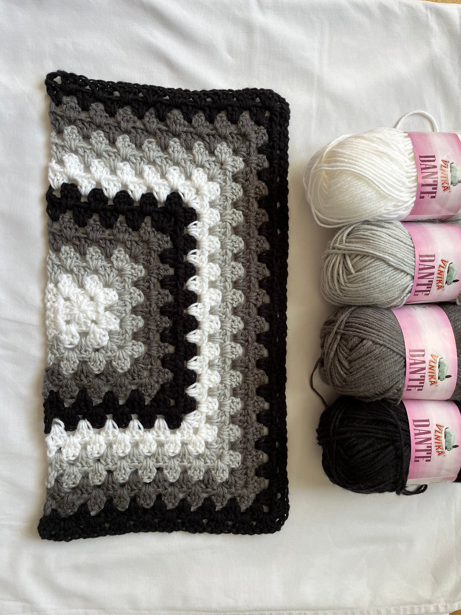 Beautiful day! Let's get started crocheting the unconventional Granny sweater Dante, which I named the Granny Chessboard of Shades!